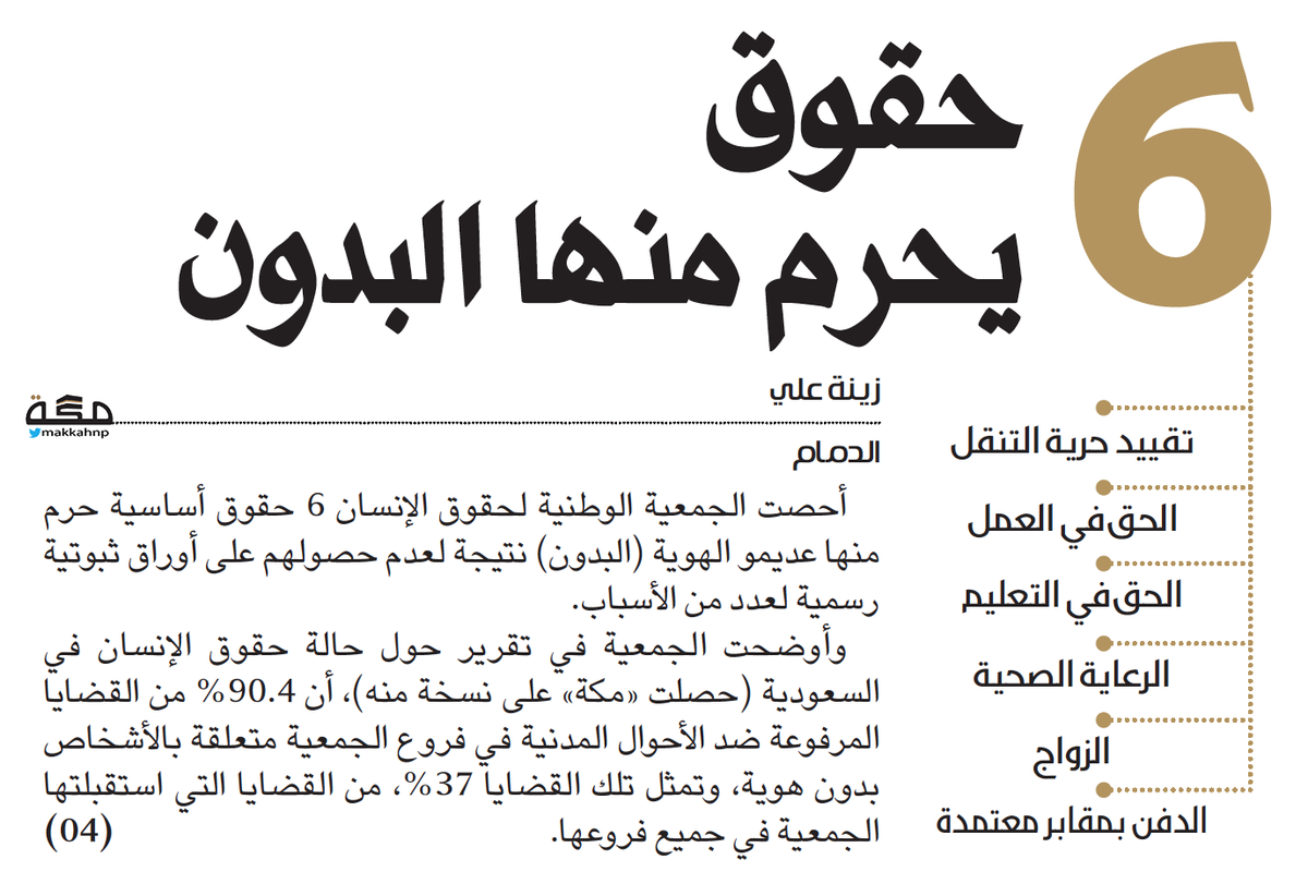 صـ حـ يـ فـ ـة مـ كـ ـة On Twitter 6 حقوق يحرم منها البدون Http T Co 4c8wauqcmb صحيفة مكة Http T Co Rsiq0vek00