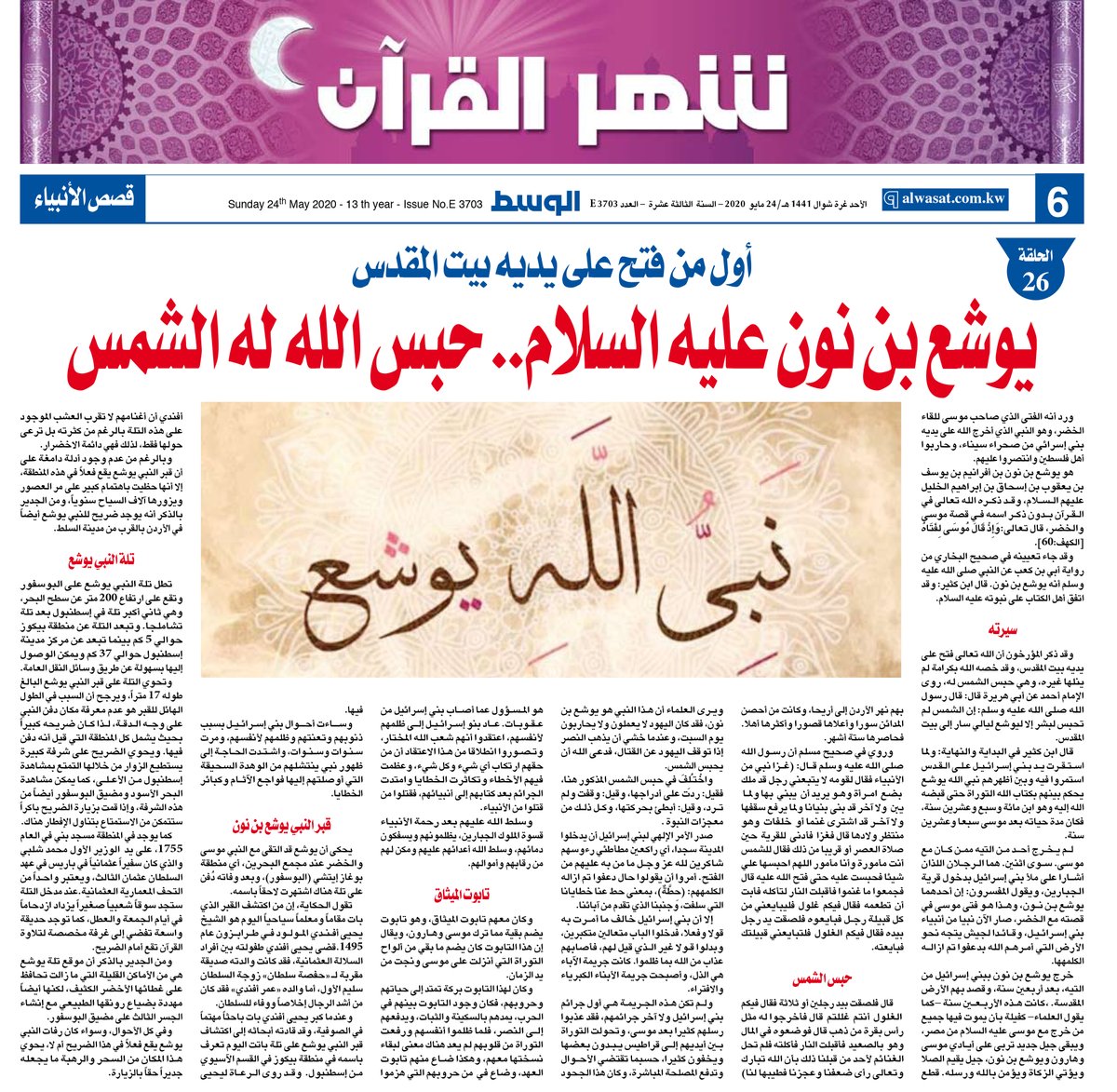 صحيفة الوسط الكويتية منوعات رمضانية يوشع بن نون عليه السلام حبس الله له الشمس رمضان الكويت